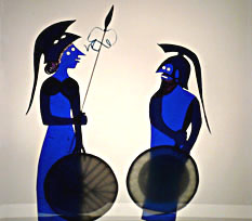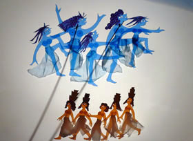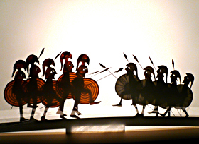 oder konterkariert die Schattenbilder mit Saxophon